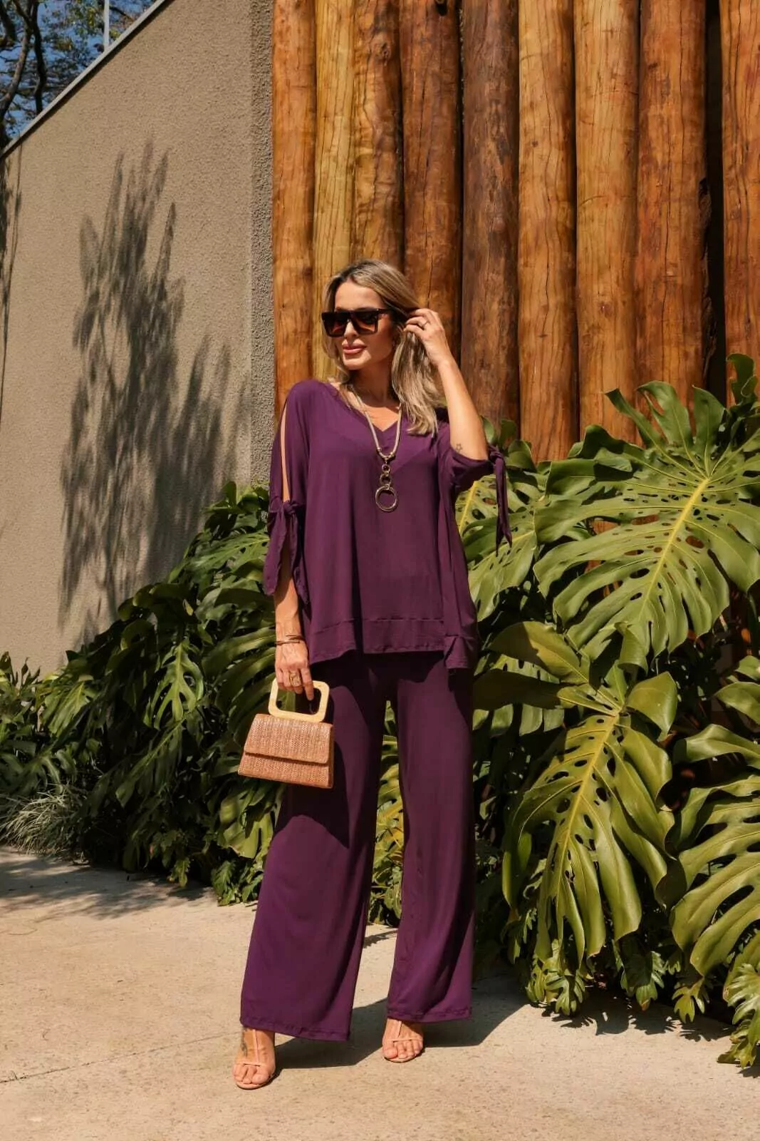 • Calça Pantalona com bolsos e elástico.